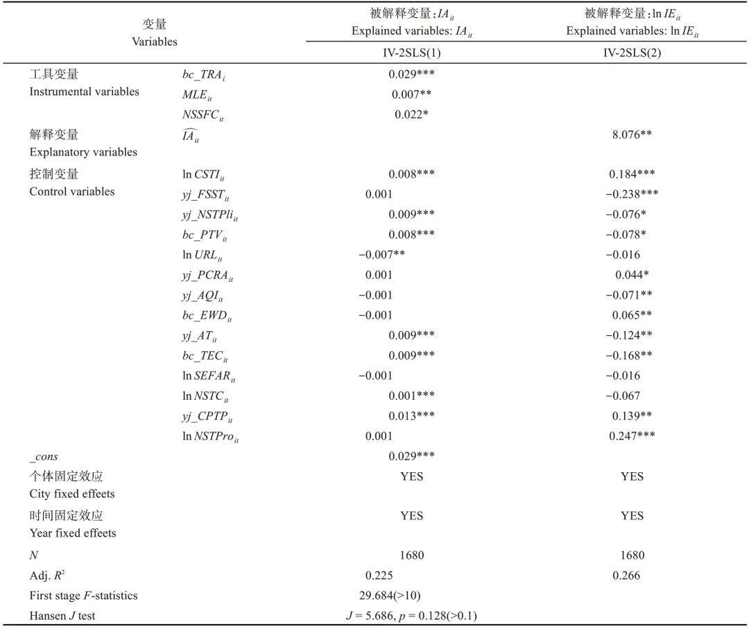 本文基于理论和统计相关性对工具变量进行了筛选,具体依据包括:一是参考李光勤等对旅游资源禀赋机制分析[54],旅游资源丰度(bc_TRAi)可显著吸引体育旅游企业在空间与市场维度上集聚,具有较强结构外生性,不直接决定产业能值表现;二是目标城市当年是否有中大型企业(实缴资本超过1000万元)注册成立(MLEit),反映市场机会与经济预期,是市场集聚前置条件,而非能值直接决定因素;三是是否存在国家社科基金立项项目(NSSFCit),代表地方在政策研究与知识生产方面活跃程度,与技术集聚高度相关,但其对能值影响具有时间滞后性,主要通过营造制度环境与政策支持间接促进产业能值提升。