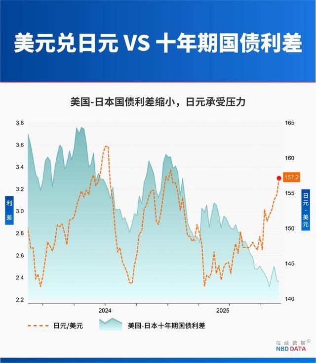 在美日利差并未进一步明显扩大的情况下,美元兑日元本周一度涨超1%,突破157日元关口,创下近10个月新低,距离市场普遍认为会触发日本当局干预的160关口仅一步之遥。