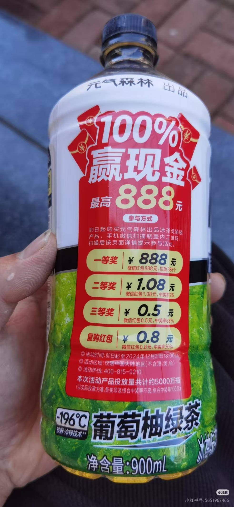 活动核心与形式:以元气森林冰茶为例,其扫码活动从2024年依赖大额现金红包,转变为2025年精算的三维权益组合:小额现金红包(如0.3元)、会员优惠券(如25元)和每周抽取888元大奖的抽奖券。
