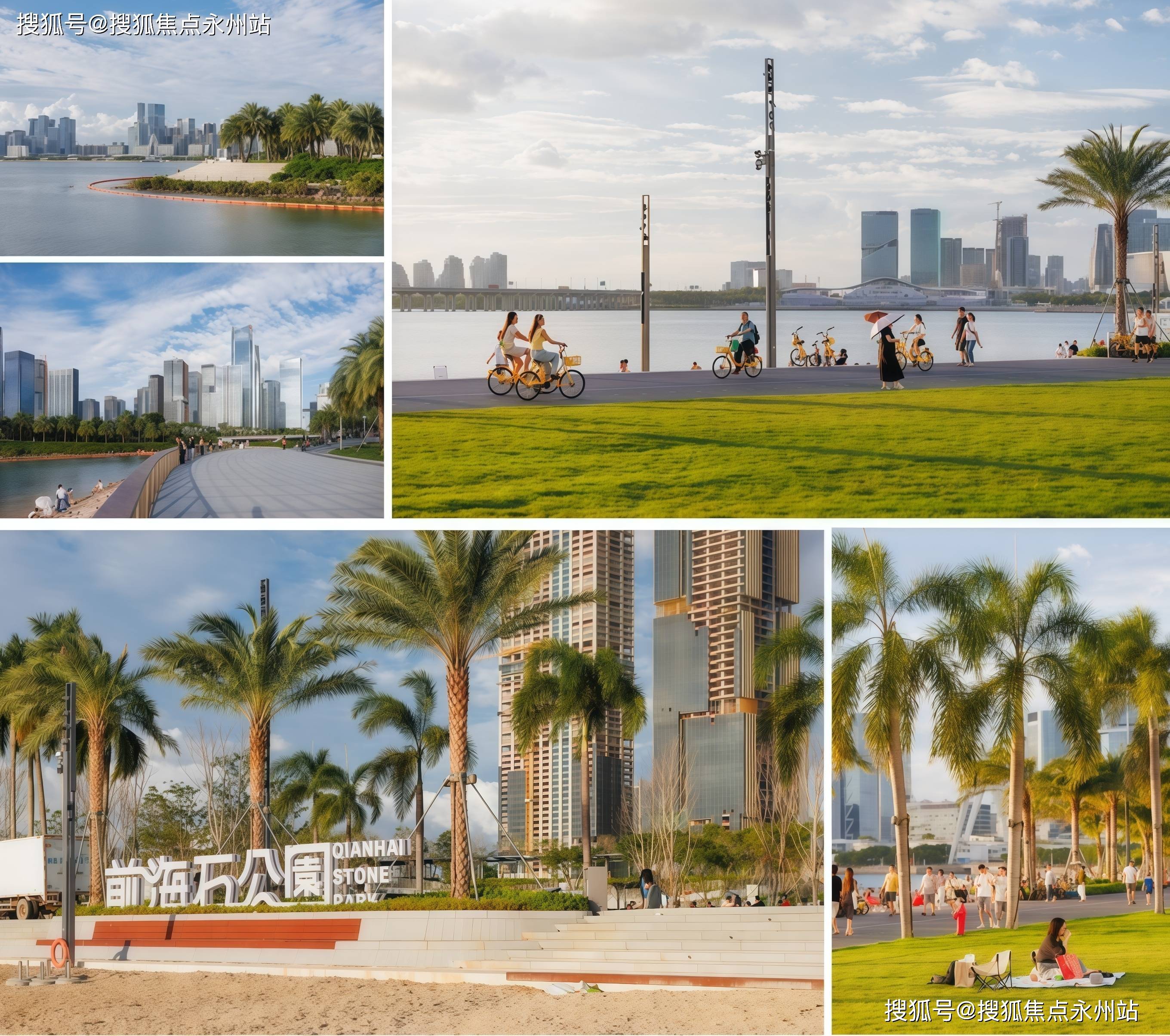 桂湾公园(约20万㎡)、前海石公园(约30万㎡)、演艺公园(约15万㎡)三公园环抱,社区与桂湾公园仅隔桂湾河,步行10分钟可达滨海休闲带。2025年升级后的前海石公园桂湾段新增1.72万㎡滨水空间,包括可容纳2200人的海堤坐阶、3600㎡人工沙池及1.4万㎡星空草坪,成为城市新地标。